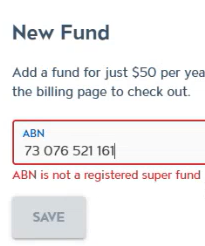 - Colladium will validate your fund's ABN and if it's correct, you'll be able to click 'save':